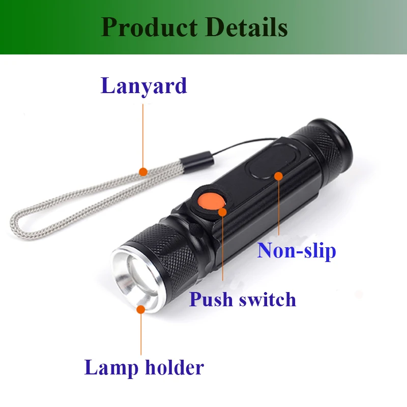 5. Срок службы лампы: 100 000 часов6. Цвет: черный7. Излучаемый Цвет: белый свет8. Переключатель: кнопочный переключатель9. Линзы: выпуклая линза