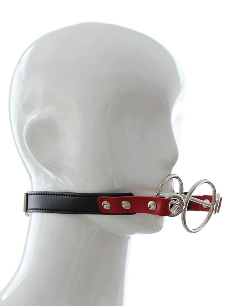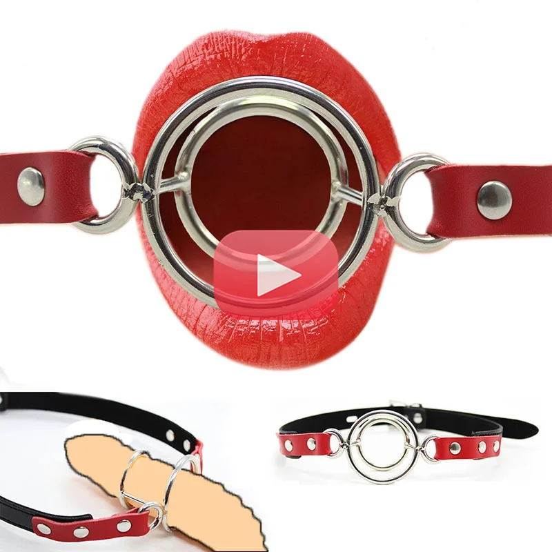 Кляп легко обертывается вокруг головы вашего партнера, а двойное уплотнительное кольцо из нержавеющей стали держит рот хорошо и широко. Затем смело вставляйте член в кольца.