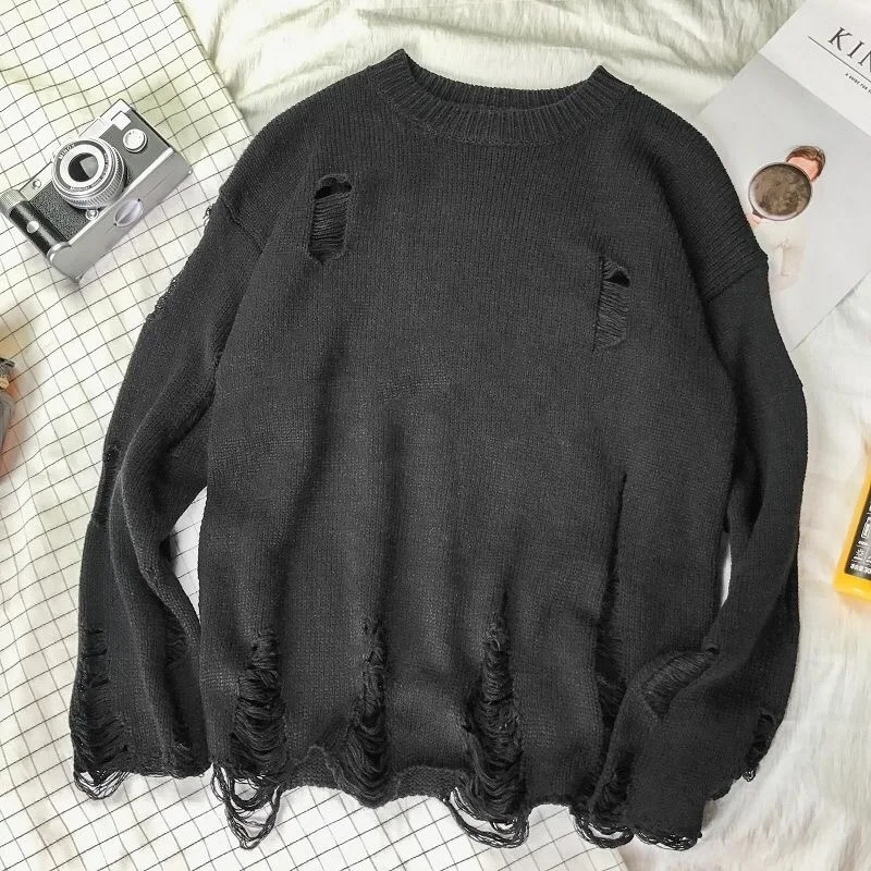МужскойженскийМужской трикотажный свитер с дырками, в стиле Харадзюку