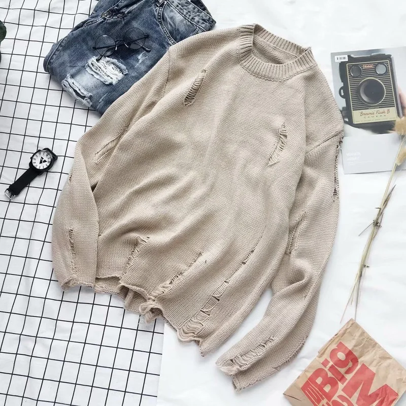 Рваные вязаные свитера с дырками для мужчин и женщин, уличная одежд...