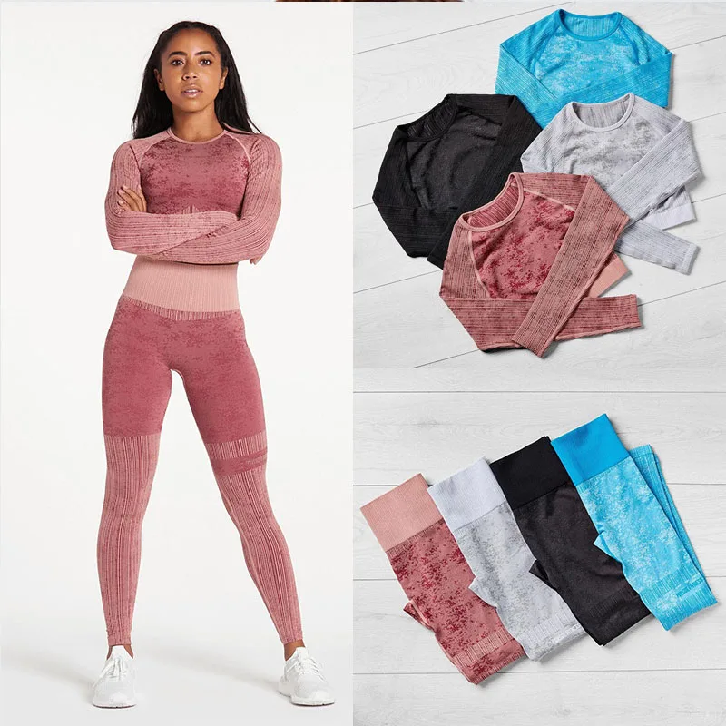 Бесшовный спортивный костюм, спортивная одежда для фитнеса, комплект для йоги, одежда для тренировок для женщин, Топ с длинным рукавом, одежда для тренажерного зала, женская одежда для тренировок