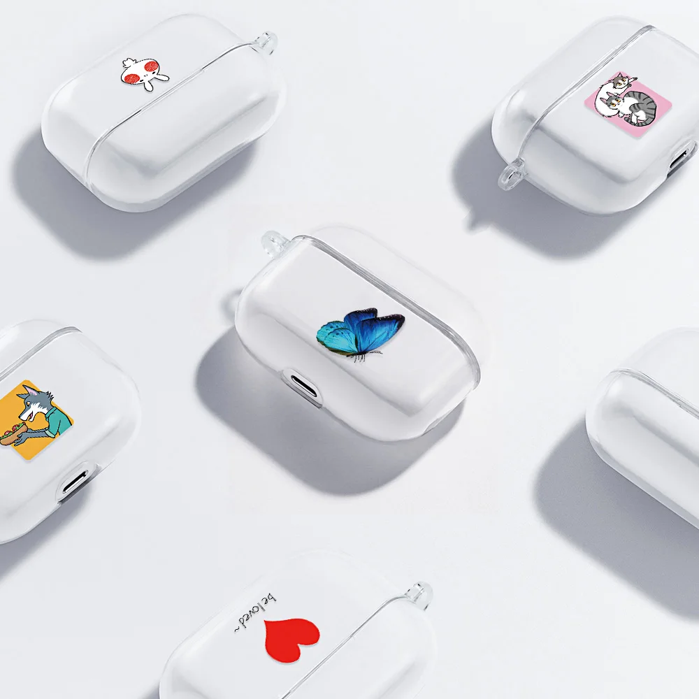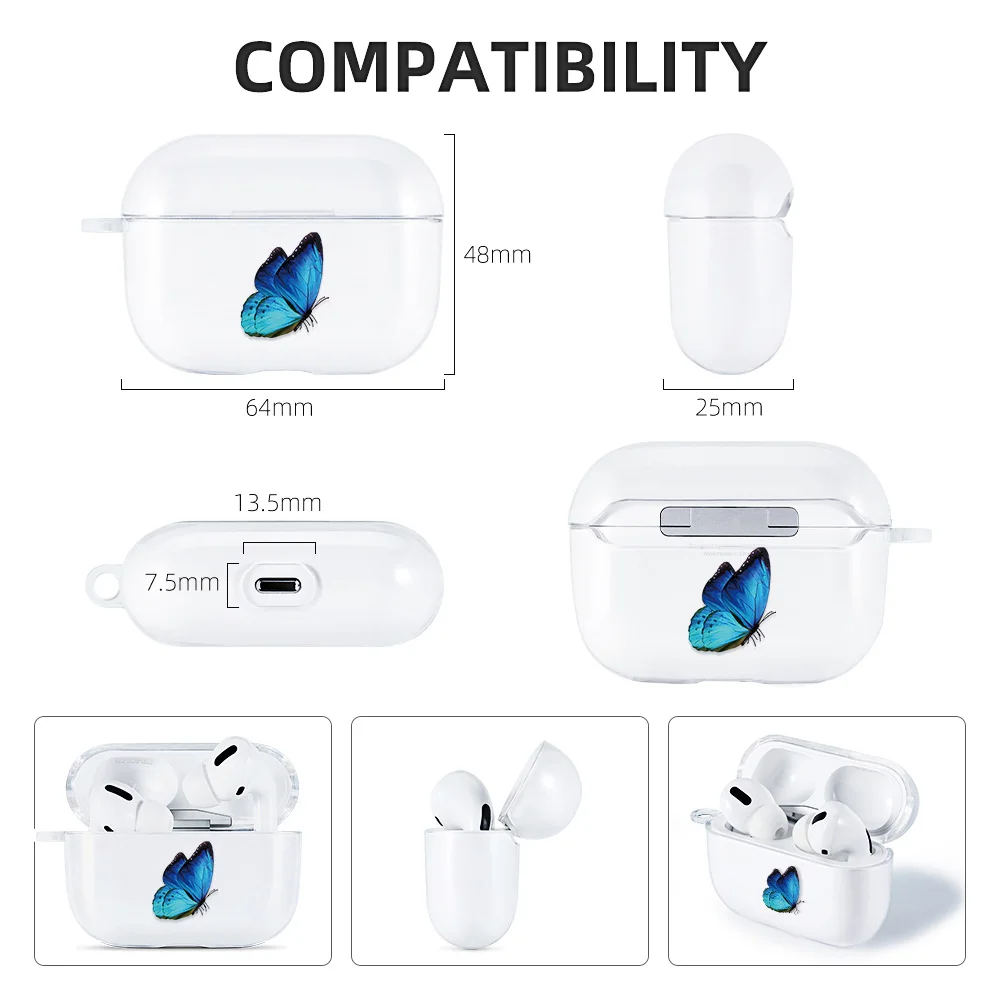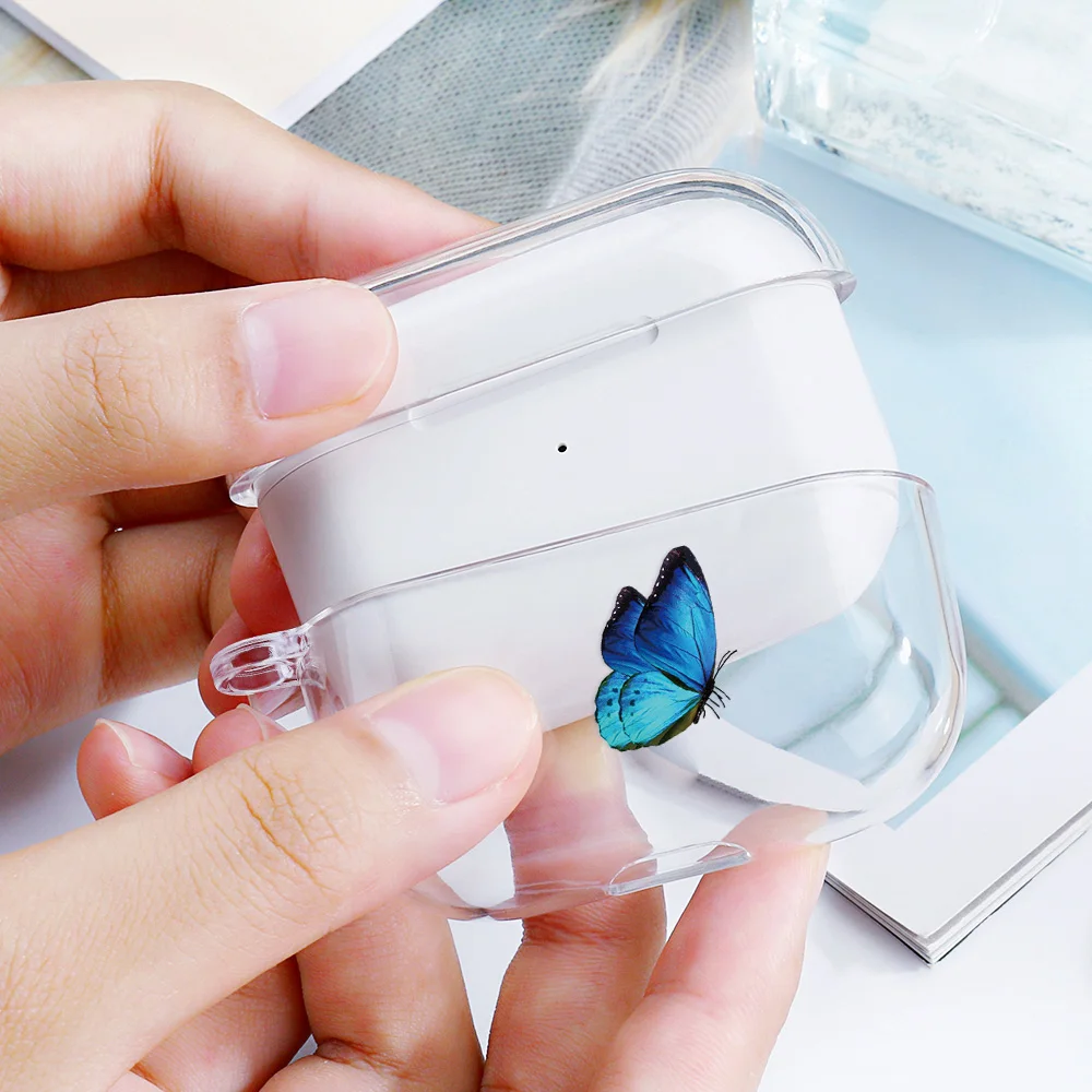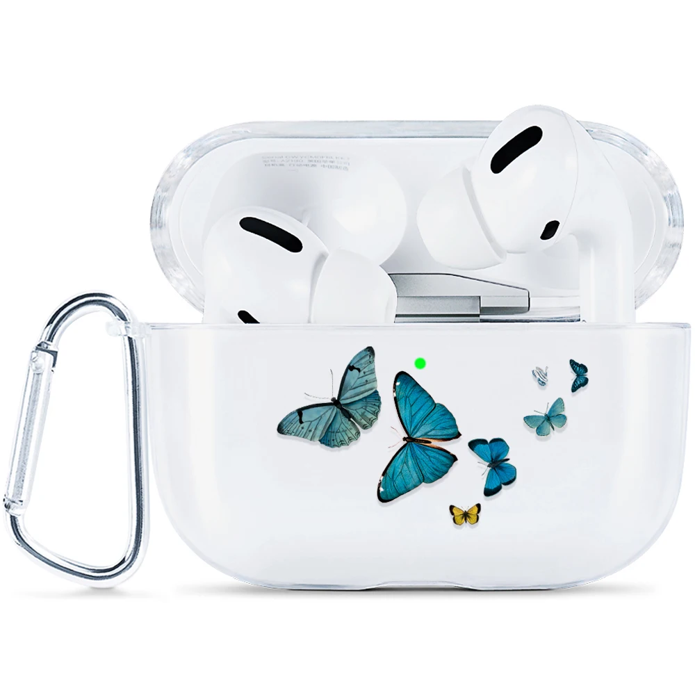 Чехол для AirPods 2, 1, прозрачный, мягкий, с бабочкой, с крючком