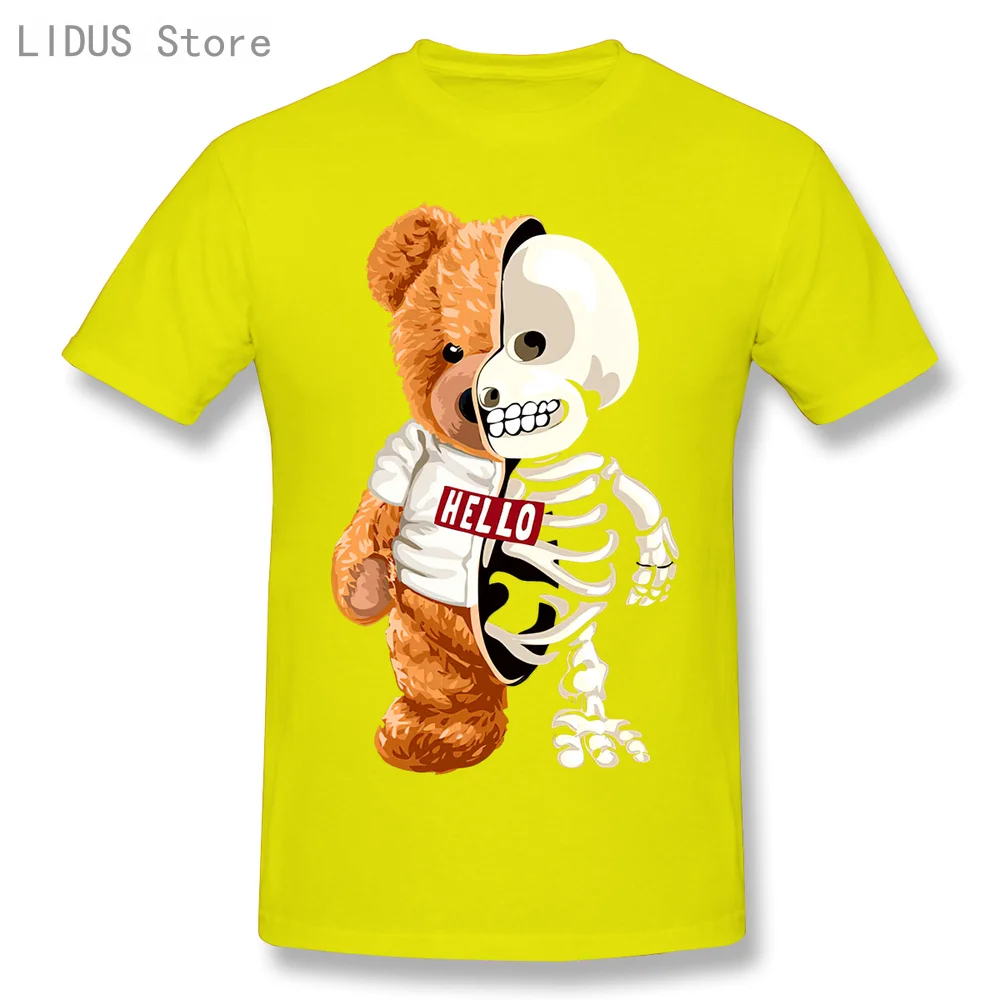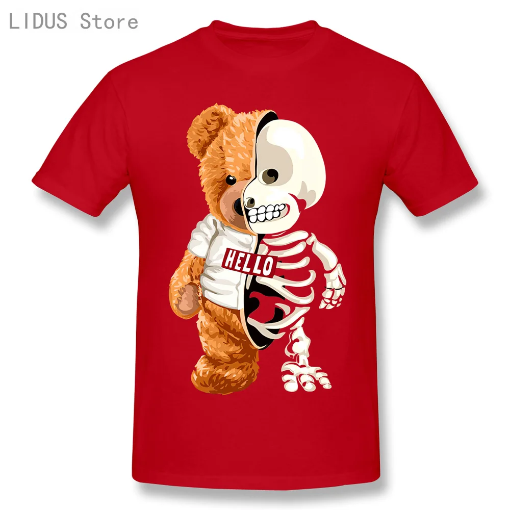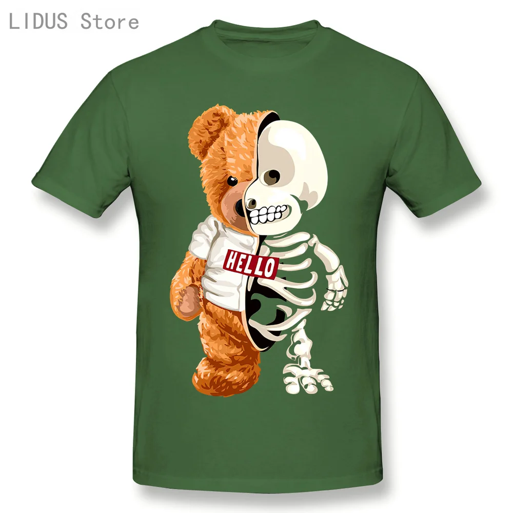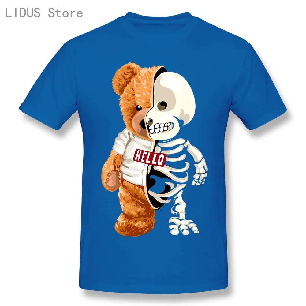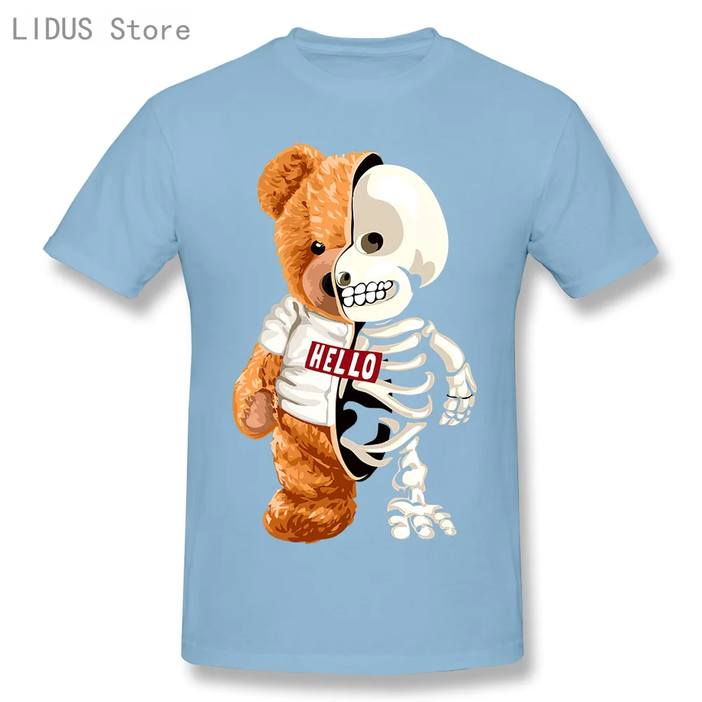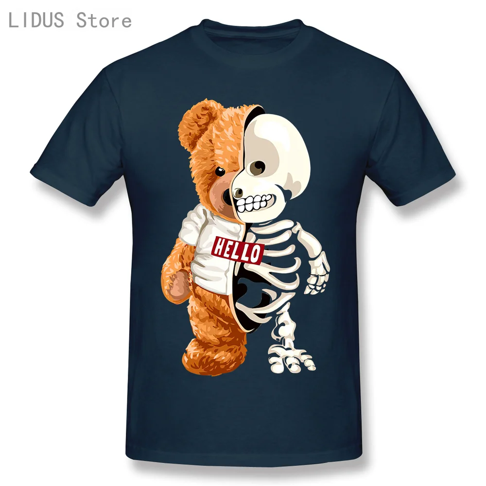 Новинка 2021, забавная футболка с изображением мишки тедди и черепа, повседневная мужская одежда со скелетом, Модная хлопковая футболка, футболка, Топ