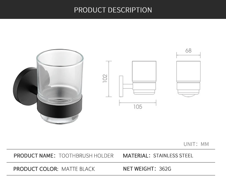Держатель для зубной щетки для ванной комнаты, матовые стеклянные с...
