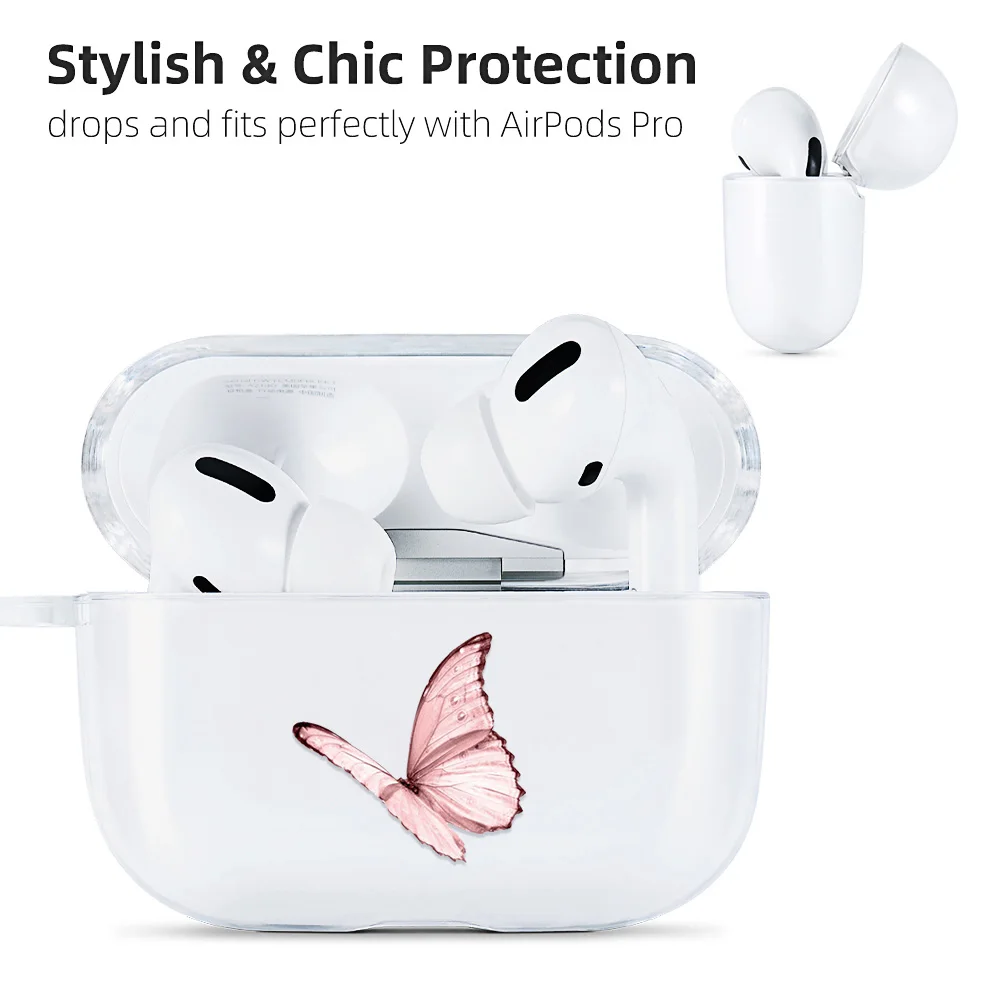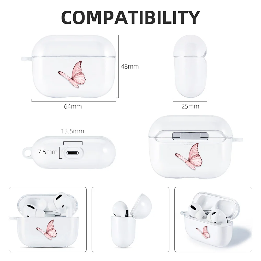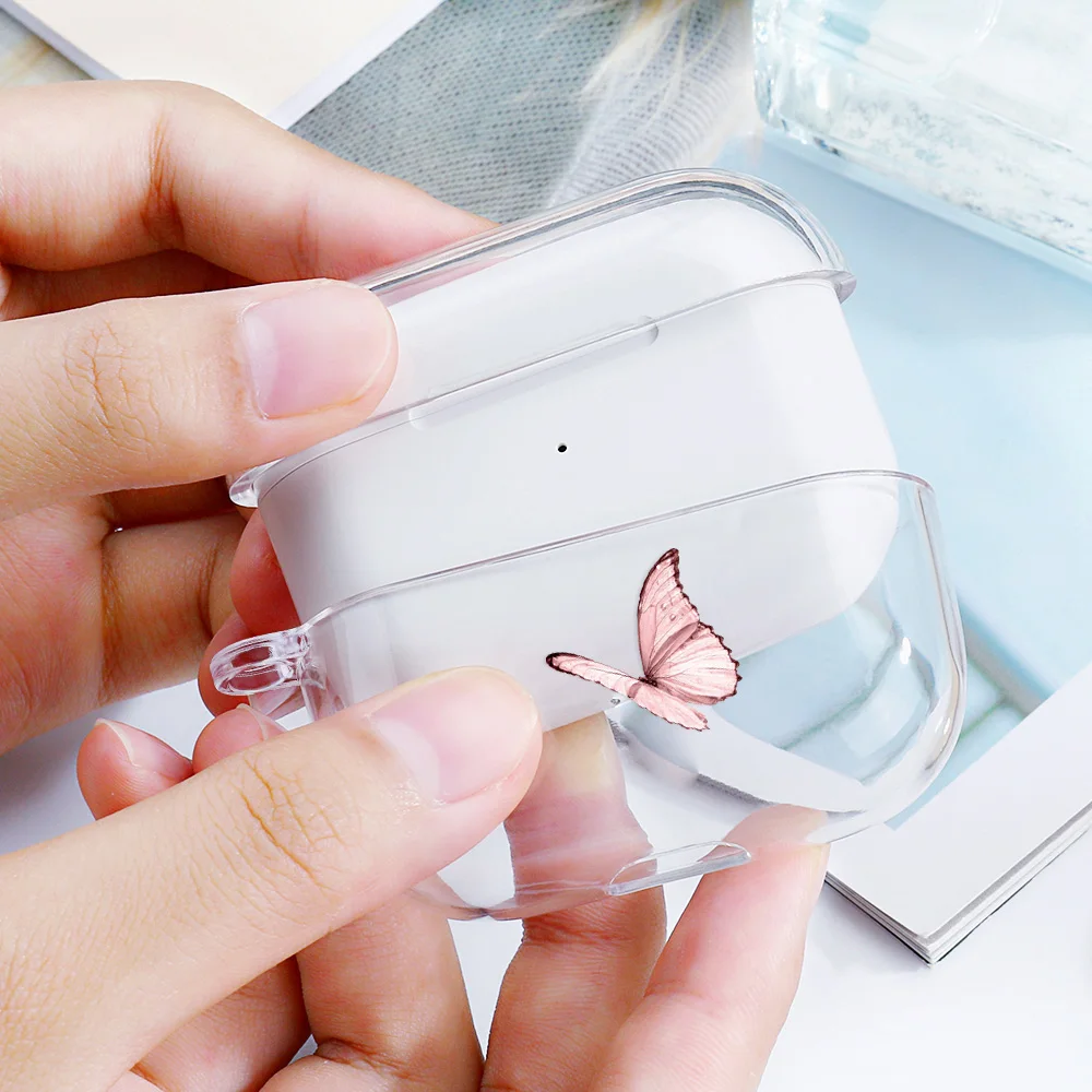 Чехол для наушников с бабочкой для Airpods 2 1, чехол, Прозрачный мягкий силиконовый чехол для наушников Airpods Pro, мягкий чехол из ТПУ с крючком