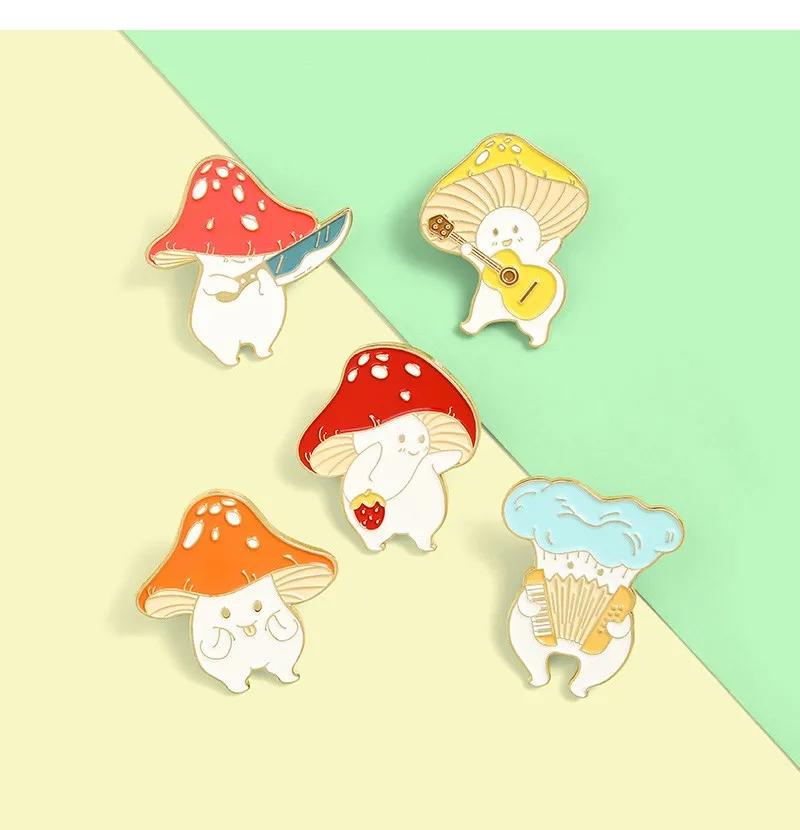 Брошь на лацкан с изображением милого гриба, гитары, аккордеон