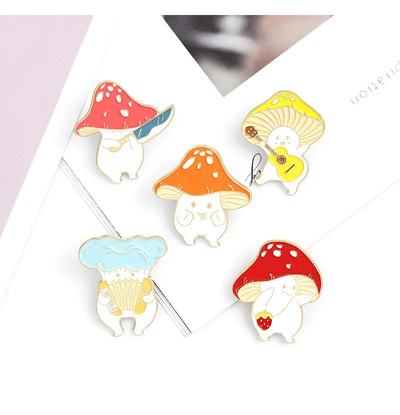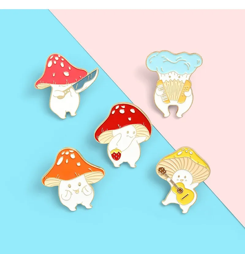 Праджня милые гриб эмаль на булавке на заказ Забавный гитары Ножи с...