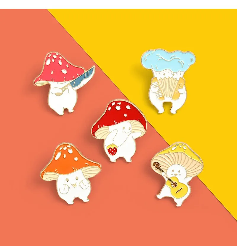 Эмалированные заколки с животными, забавные броши в виде грибов на заказ, симпатичная брошь из сплава, мультяшный значок, булавка для лацкана, броши унисекс, подарок для детей, друзей
