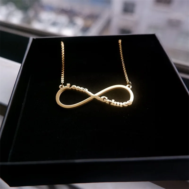 Индивидуальное ожерелье бесконечности с несколькими именами, индивидуальное модное ожерелье из нержавеющей стали с персонализированной коробкой, ожерелье с подвеской, Женские Ювелирные изделия