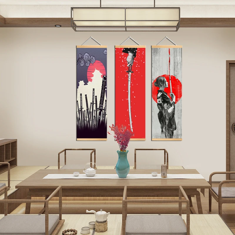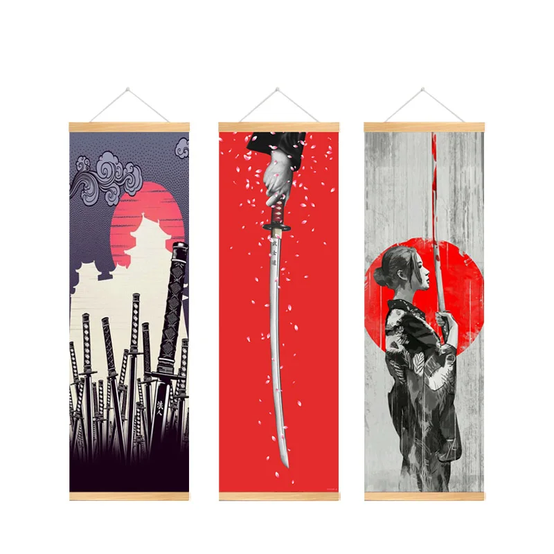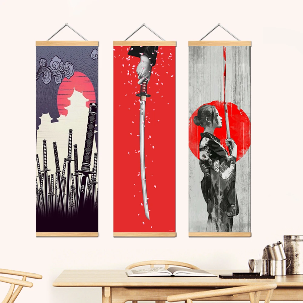 Постер на холсте в стиле укиё-э, японский ретро-постер с деревянной...