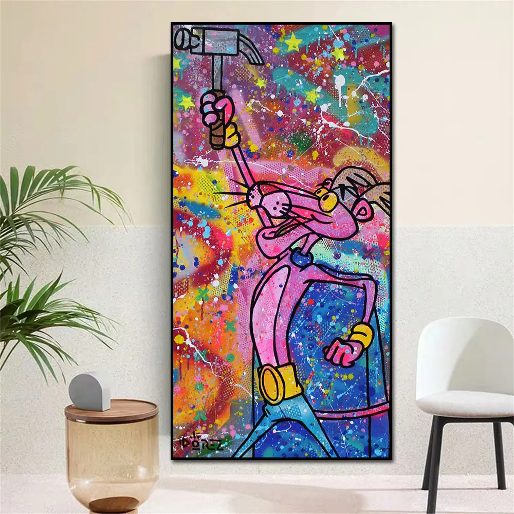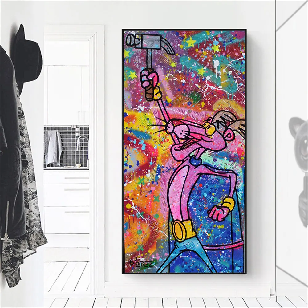 Граффити Розовая пантера мультфильм поп-арт красочный постер печать на холсте живопись Настенная картина для гостиной украшение для дома