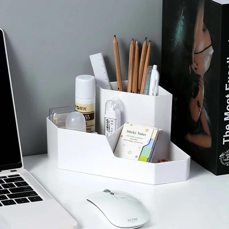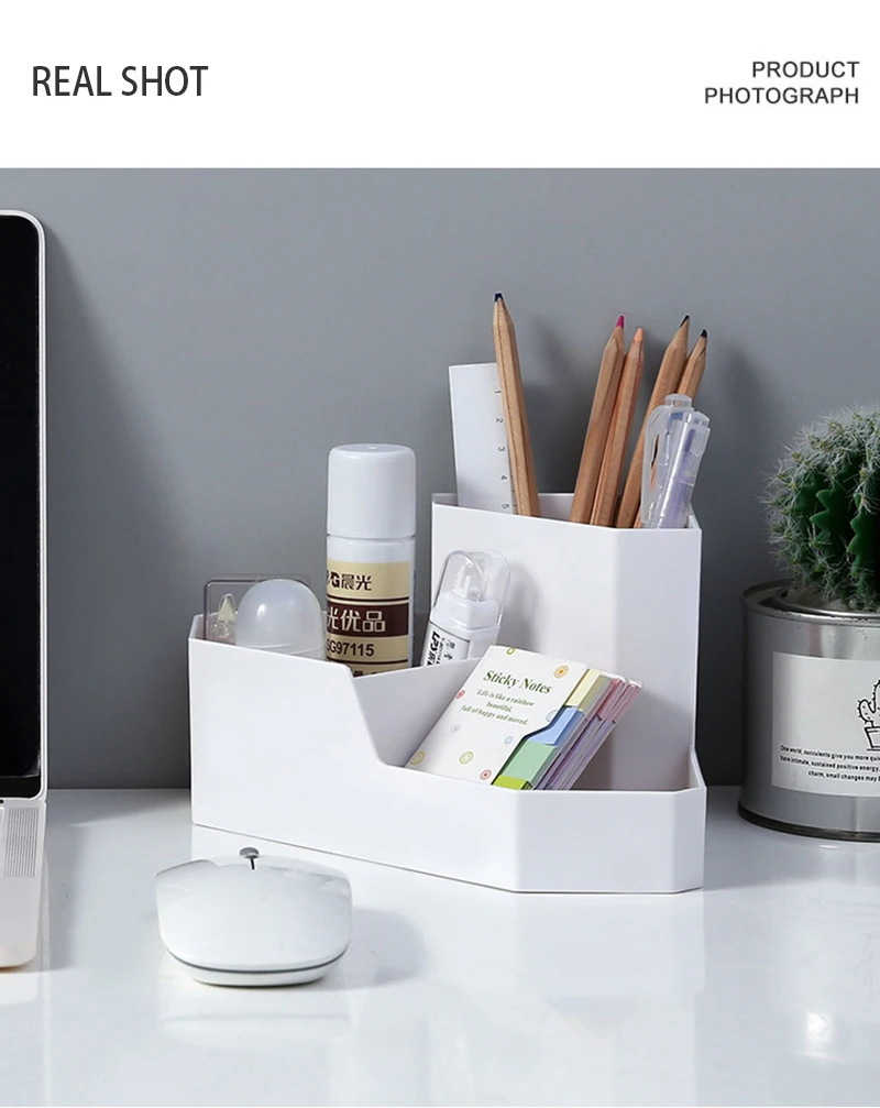 Органайзер для косметики, 3 отделения, искусственная косметика, контейнер для хранения большой емкости, настольный держатель для ручек, офисные канцелярские принадлежности