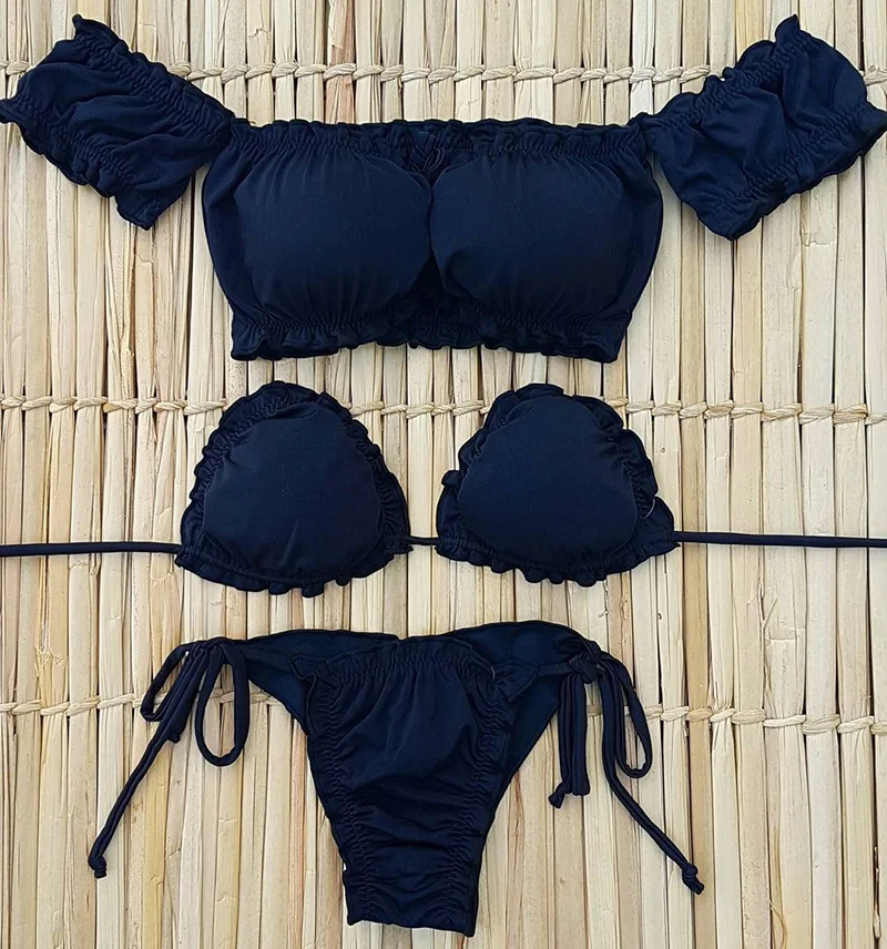 Женское бикини с оборками, купальник, бикини с открытыми плечами, купальник, бикини, кружевной комплект бикини, Пляжная прогулка, 2021