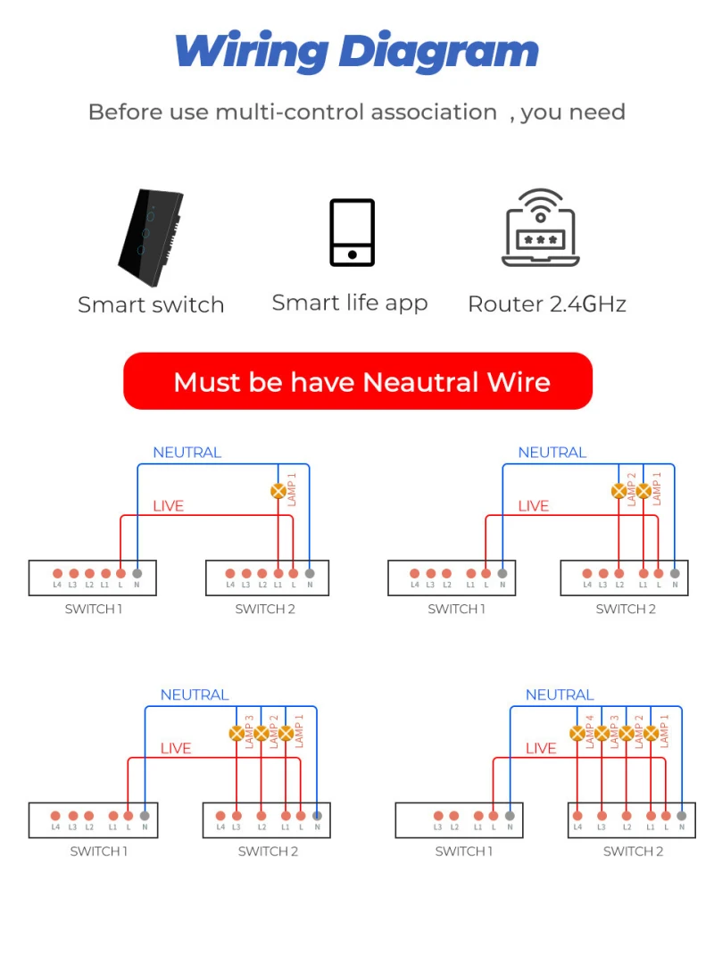 1. Поддерживает большинство ламп. Мы рекомендуем использовать светодиодный свет выше 5 Вт для L1. Лампы с регулируемой яркостью не поддерживаются.