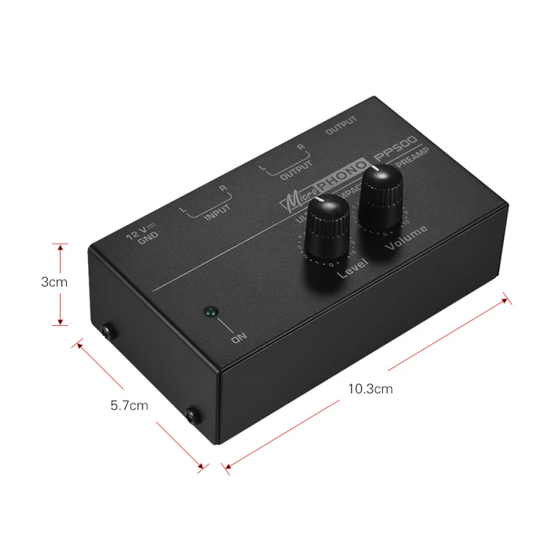 Ультракомпактный предусилитель phono с металлическим корпусом, портативный и прочный.