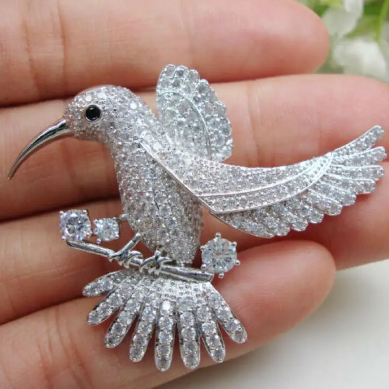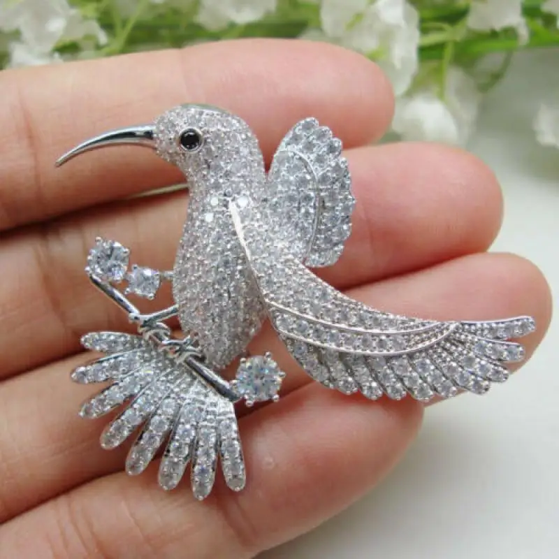 Брошь в виде животного, с кубическим цирконием, Брошь Колибри булав...