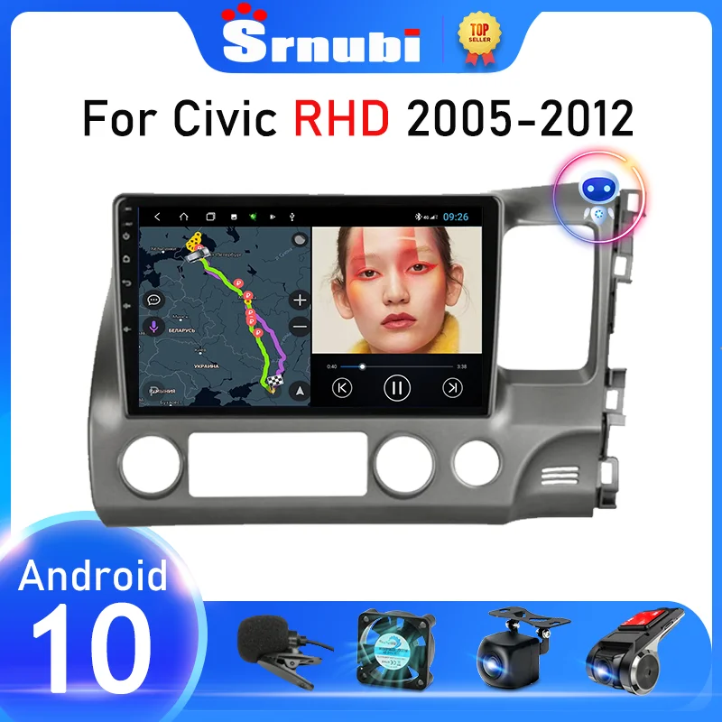 Автомагнитола Srnubi, Android 10, 2 Din, GPS, Wi-Fi, DVD, правый руль, для Honda Civic RHD 2005 - 2012