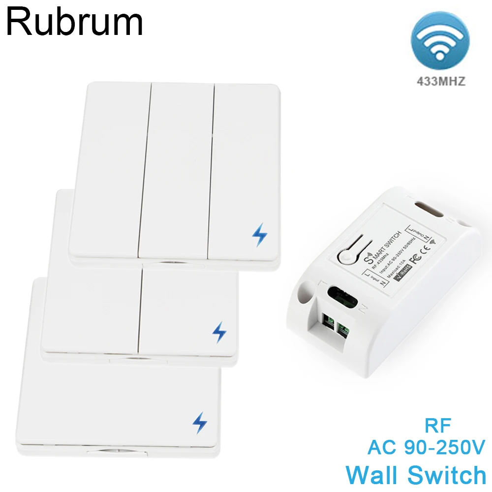 Настенная панель Rubrum 86, кнопочный выключатель дистанционного управления, умные выключатели света, 10 А, 433 МГц, 220 В переменного тока, 110 В, 1 канал, беспроводной светодиодный светильник