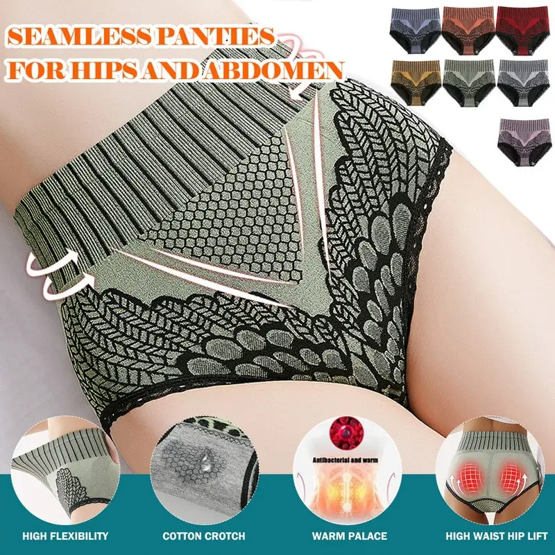 Стиль2Графеновые кружевные трусы большого размера, Женские Треугольные штаны с высокой талией, теплые штаны