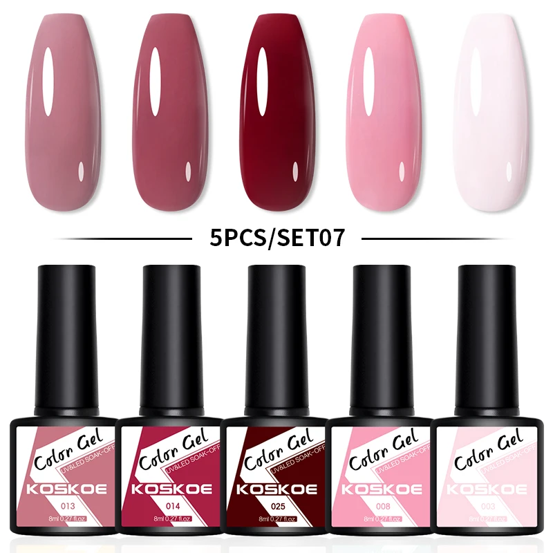 Полуперманентный Гибридный цветной гель KOSKOE, 5 шт., набор отмачиваемых УФ Гель-лак для маникюра, лак для маникюра, дизайна ногтей