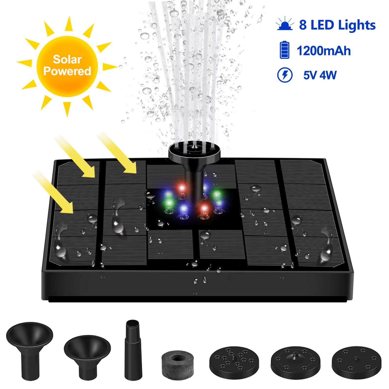 4 насадки, мини-насос для водяного фонтана на солнечной энергии