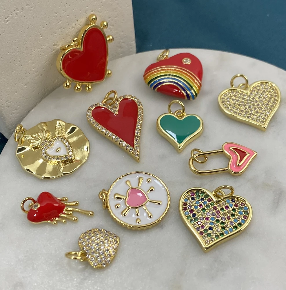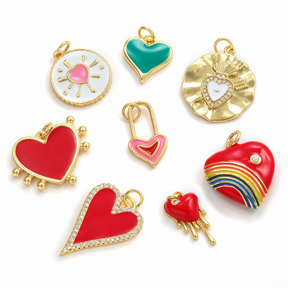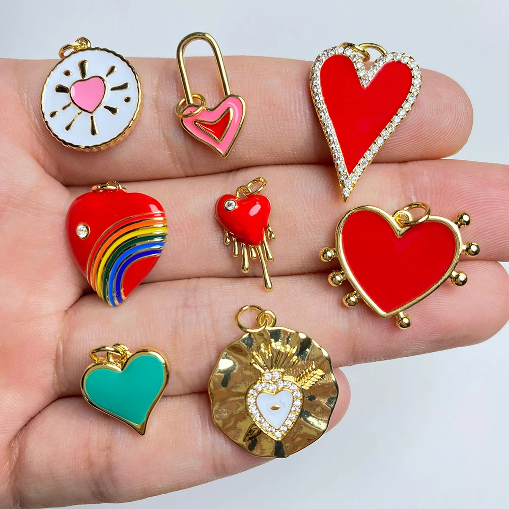 Эмалированные подвески в форме сердца для изготовления ювелирных изделий, кулоны, серьги, ожерелья, изготовление ювелирных изделий в форме сердца, медные аксессуары для рукоделия Cz