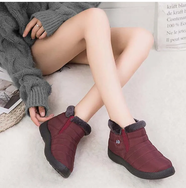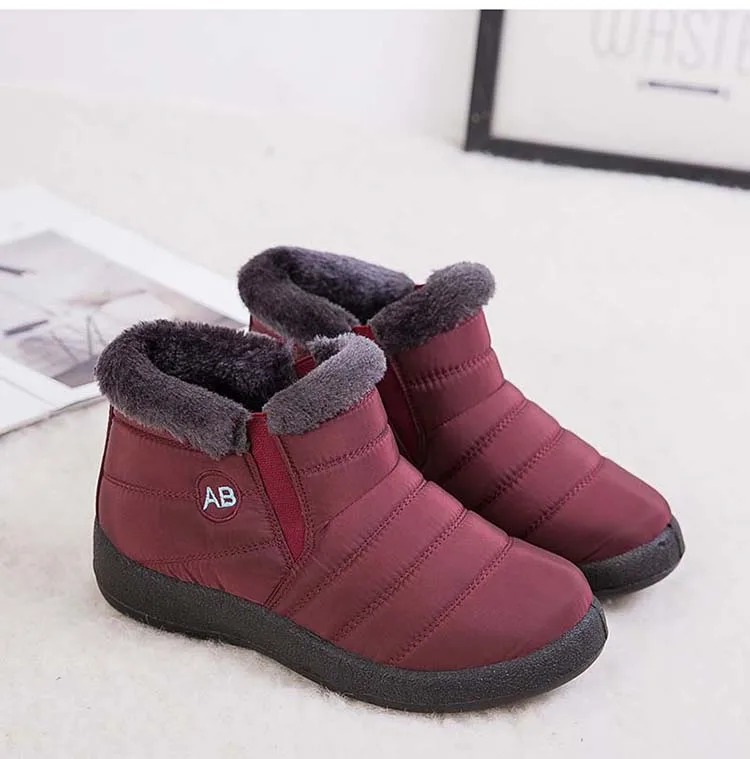 Ботильоны Женская обувь меховые плюшевые зимние сапоги женская обувь сохраняющие тепло зимние сапоги без шнуровки женские водонепроницаемые женские сапоги большого размера