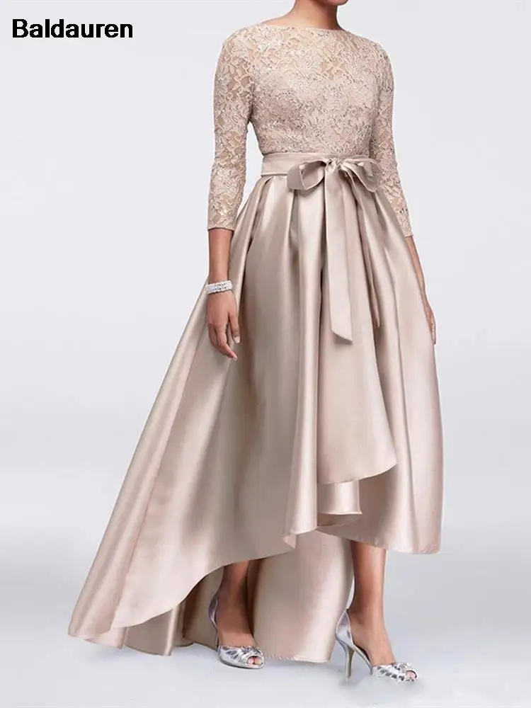 Вечернее платье для матери невесты, с кружевным поясом, цвета шампанского, размера плюс