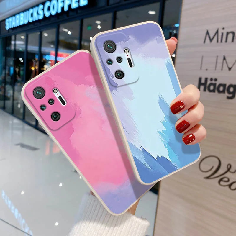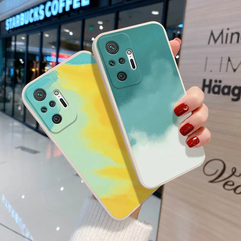 Квадратный акварельный силиконовый чехол для Xiaomi Redmi Note 10 Pro, чехлы для Redmi Note 9 11 Pro Plus 9S 10S 8 9C NFC 9A Poco X3 Pro F3 M3