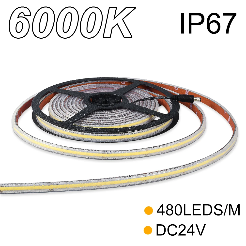 480 светодиодный sm DC24V 6000K IP67 9 Втм COB Светодиодная лента 8 мм ширина печатной платы полый экструзион