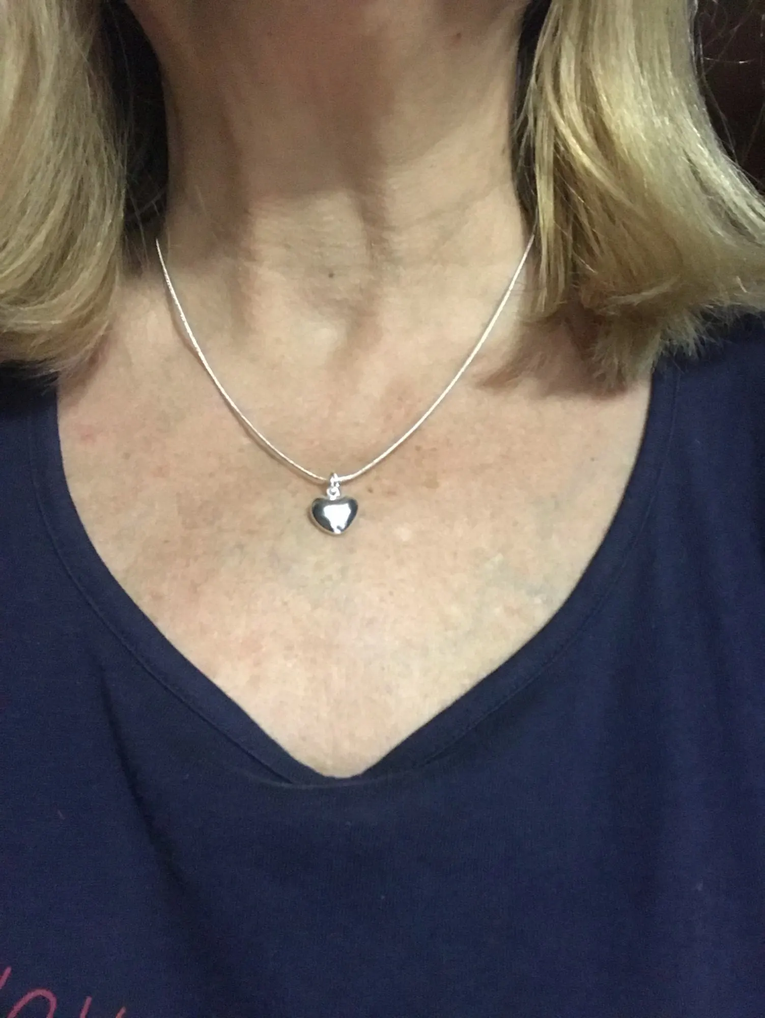 Лаконичное ожерелье с подвеской в виде сердечка Смотрится очень нежно Цепочка, плетение змейка и подвеска в виде выпуклого сердечка Вес изделия 8 граммов, серебро 925 пробы, клеймо стоит на цепочке и подвеске, товар не сертифицирован. Длина цепочки 45 см, застежка карабин-лобстер, такой замок очень надёжен Подвеска небольшого формата, клеймо с пробой стоит с обратной стороны подвески, носить можно любой стороной. Покупкой довольна