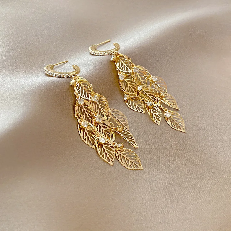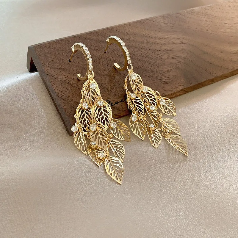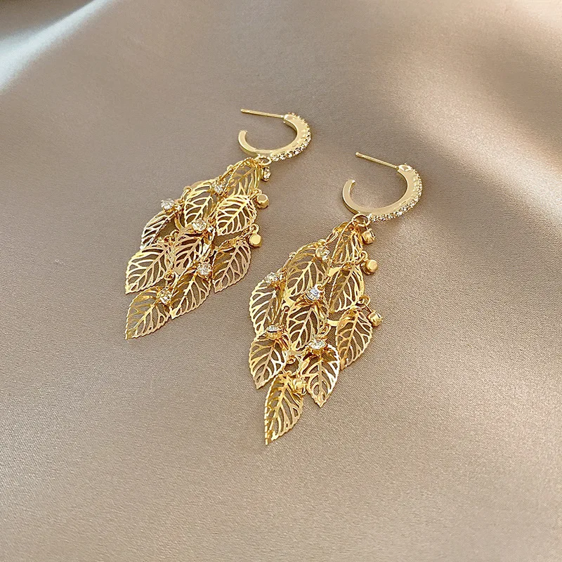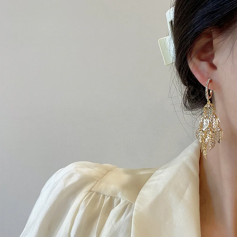 Новинка 2021, геометрические серьги-капельки с полыми листьями для моделирования, висячие серьги для пожилых людей, длинные блестящие женские серьги в гипербольском стиле с кристаллами