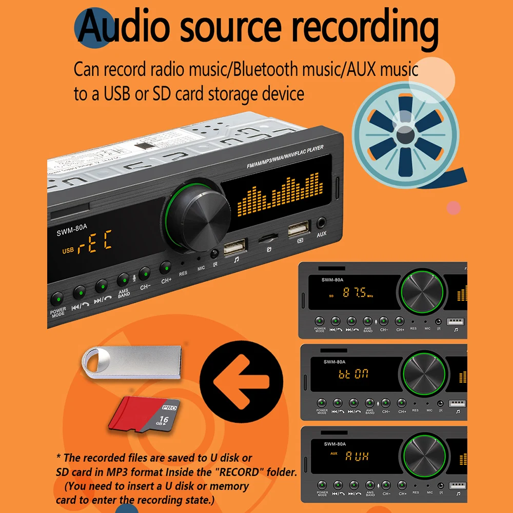 SWM-80A Bluetooth Авторадио автомобильное стерео радио FM Aux вход ...