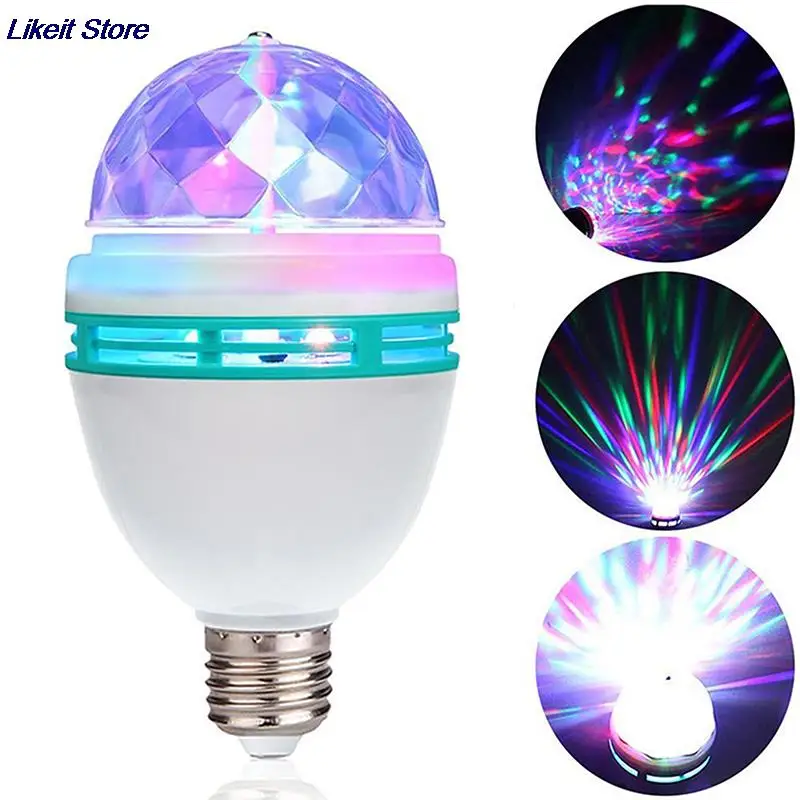 Цветной Вращающийся сценический диско-светильник E27, 3 Вт, RGB ампульная лампа, лампа для вечеринки, декоративная игрушка для дома, светодиодный светильник