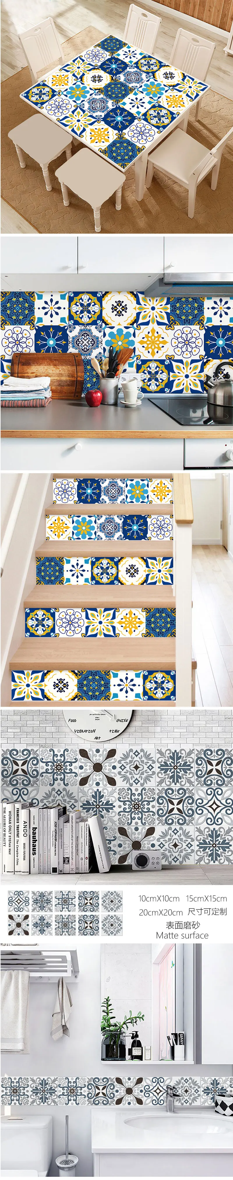 10 шт. Европейский стиль плитки наклейки Ретро узор ПВХ мозаика водонепроницаемый ремонт настенные кухонные наклейки ванная комната самоклеющиеся наклейки