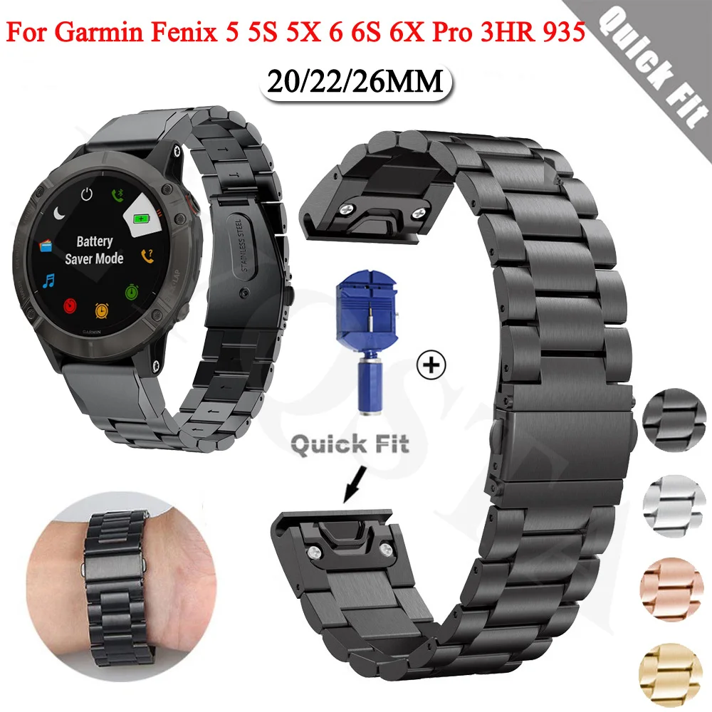Ремешок из нержавеющей стали для смарт-часов Garmin Fenix 6 6X Pro 5 5X Plus 3HR, быстросъемный браслет для наручных часов Fenix6 Fenix5, 26 22 20 мм