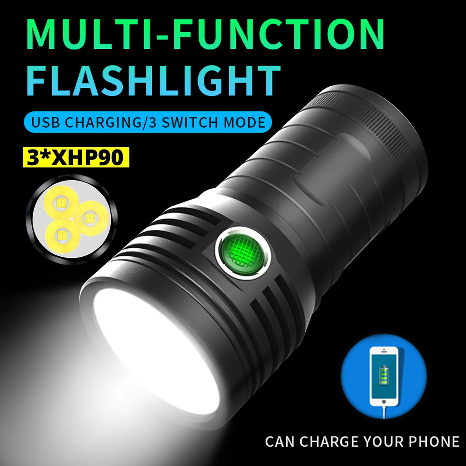 3 * XHP90 светодиодный фонарик тактильный фонарик USB перезаряжаемая горелка с 4800mAh