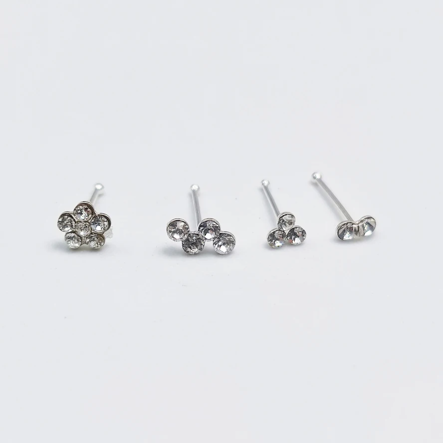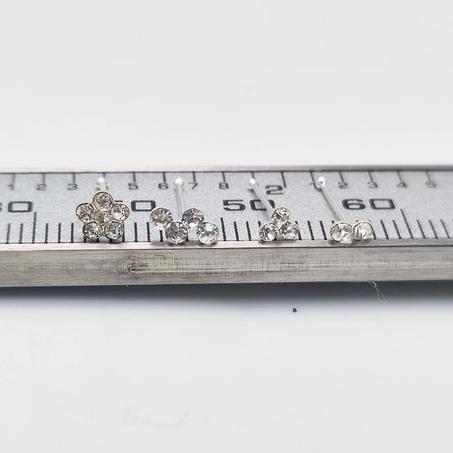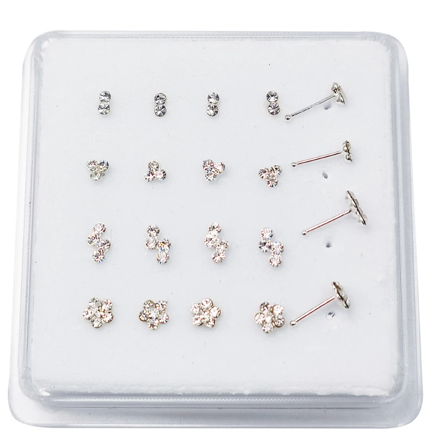 925 пробы серебро нос кольцо четыре прозрачного хрусталя 24 G кольц...