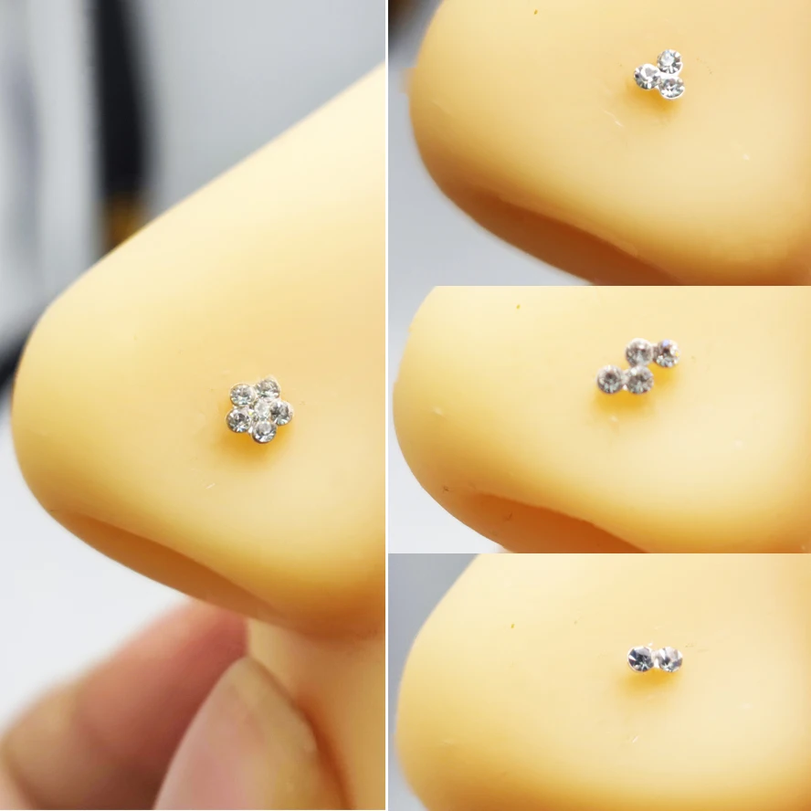 Пирсинг в нос из серебра 925 пробы, ювелирные изделия с прозрачными...