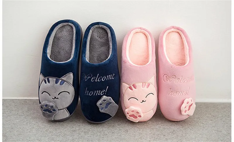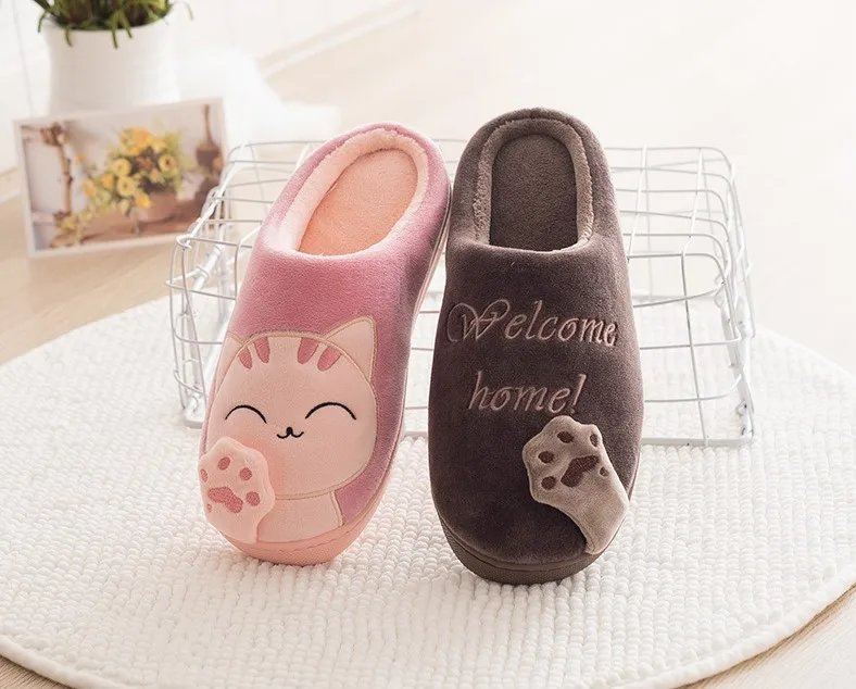 Женские зимние домашние тапочки с мультяшным котом, мужская домашня...