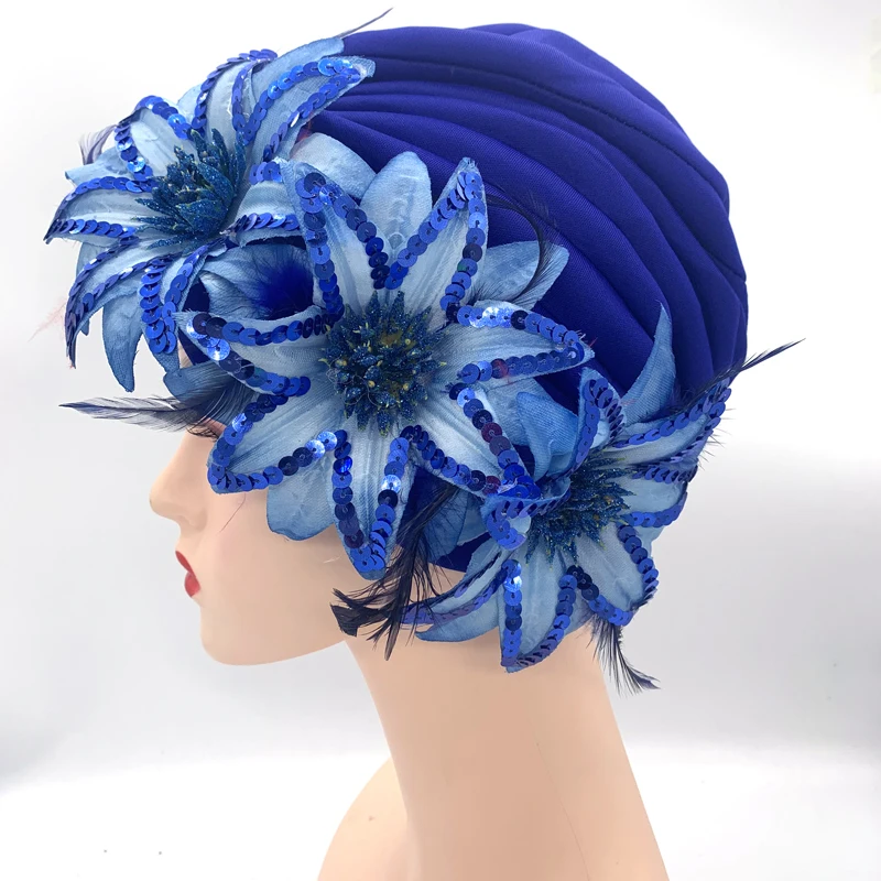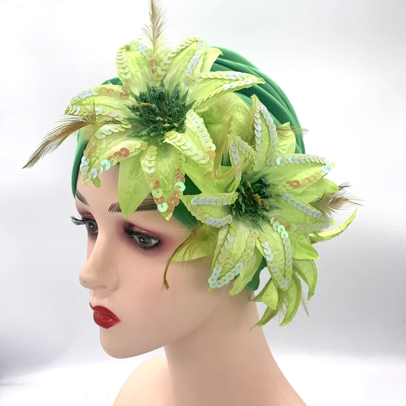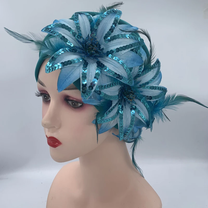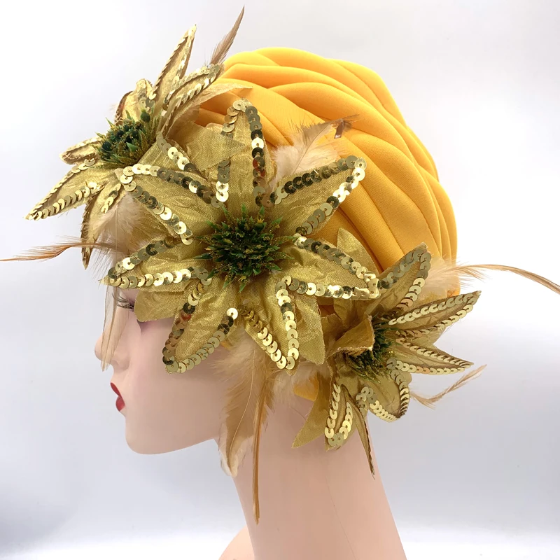 Женский тюрбан с пайетками и перьями, головной убор в африканском стиле для свадебной вечеринки, мусульманский головной убор