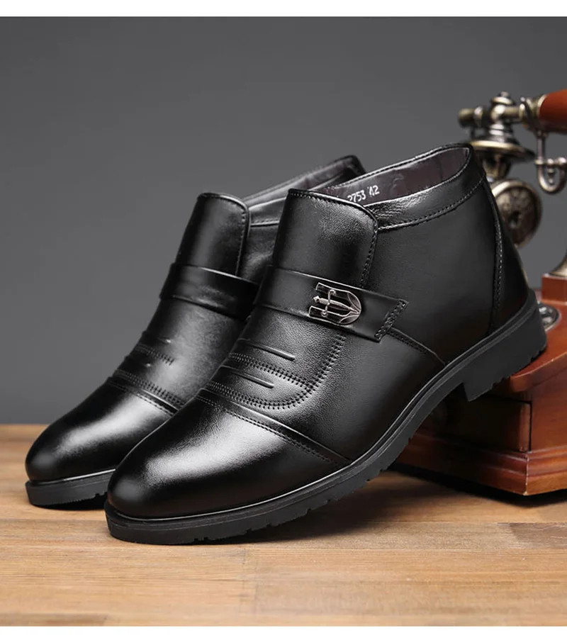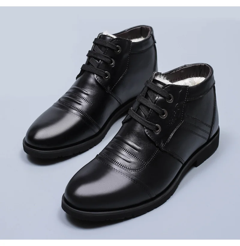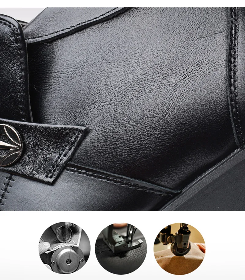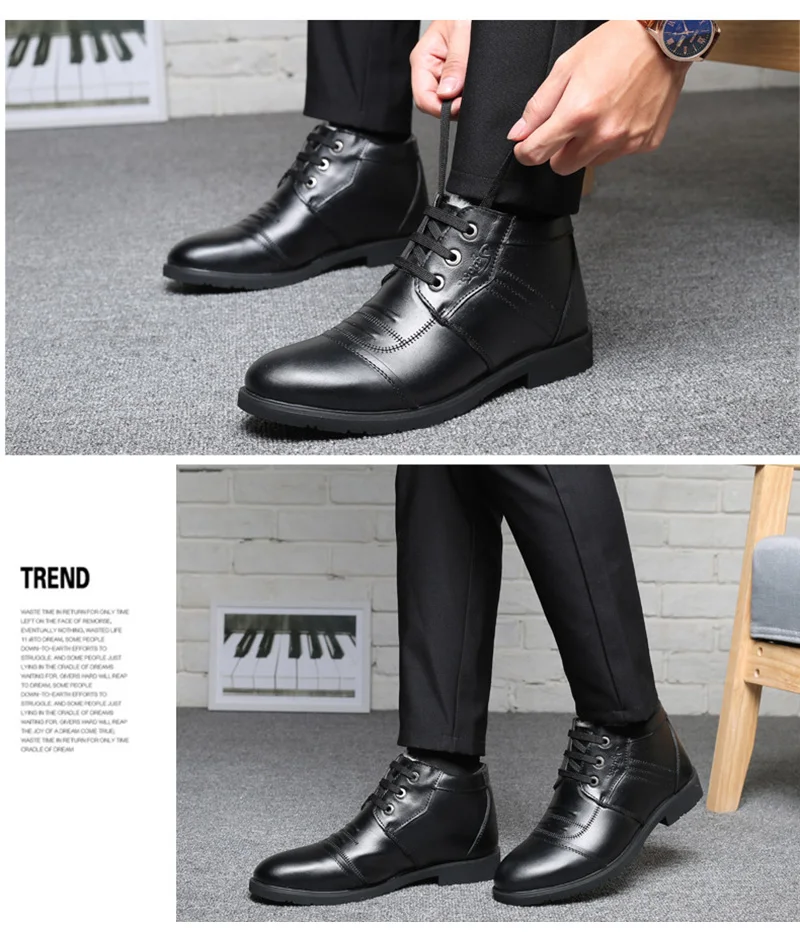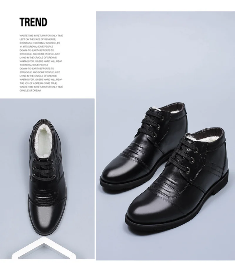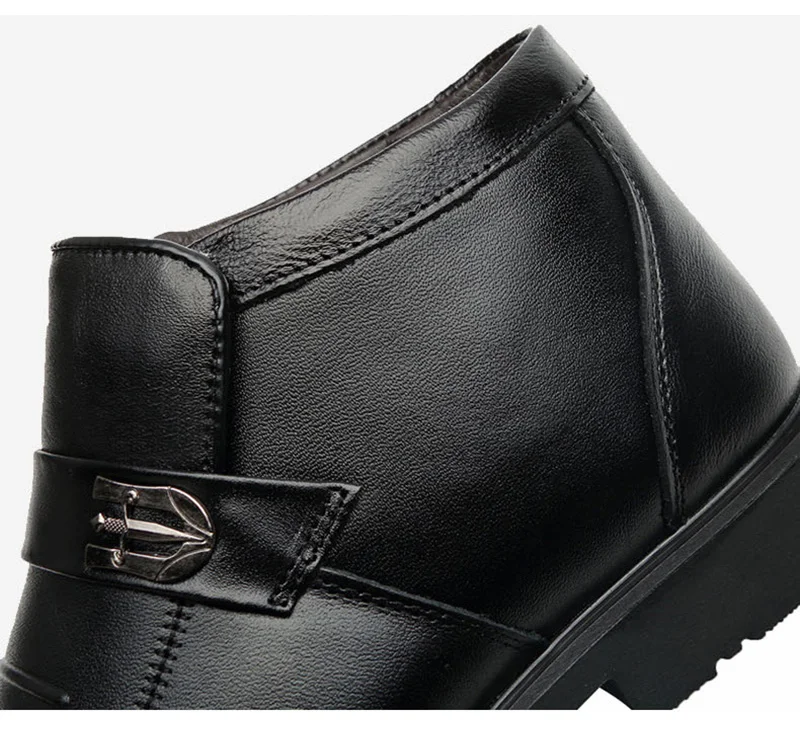 Мужские ботинки из 100% натуральной кожи, Черные ботильоны с теплым плюшем для холодной зимы, 899