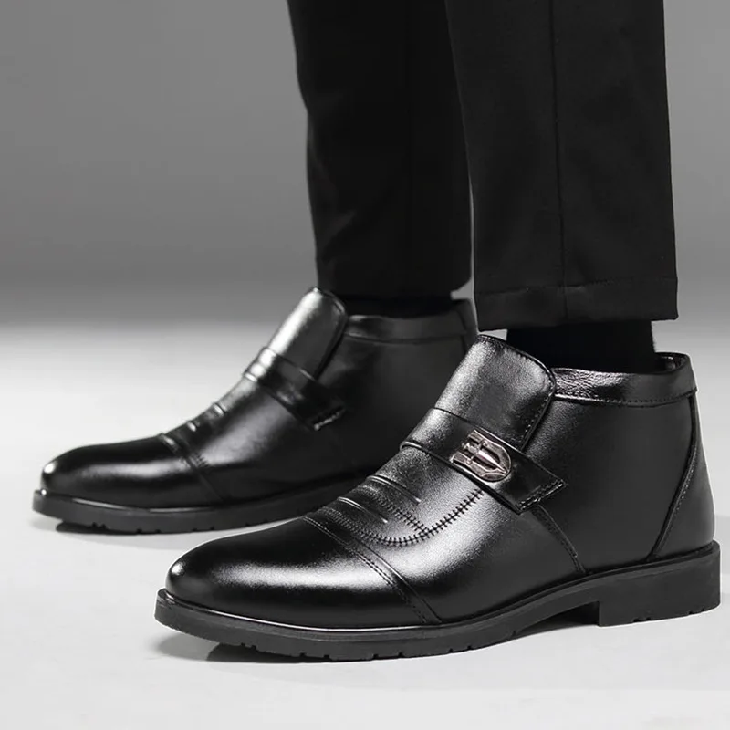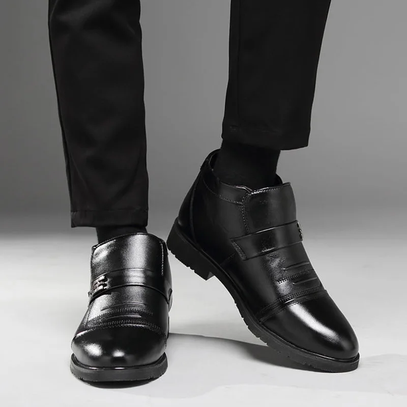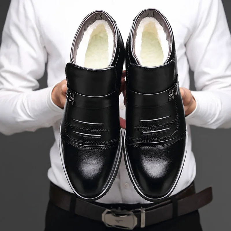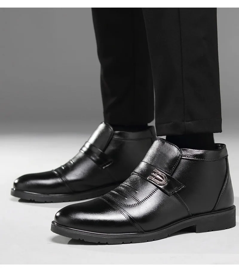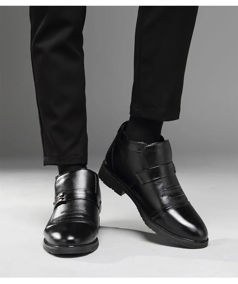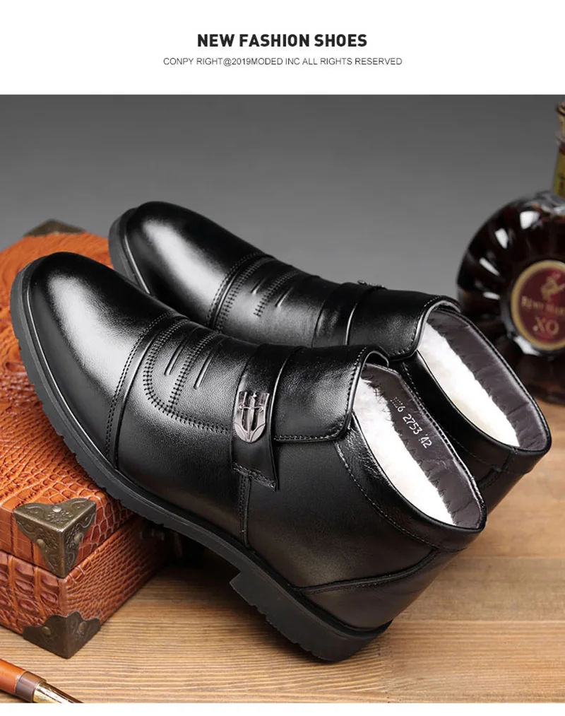 Мужские ботинки из 100% натуральной кожи, Черные ботильоны с теплым плюшем для холодной зимы, 899