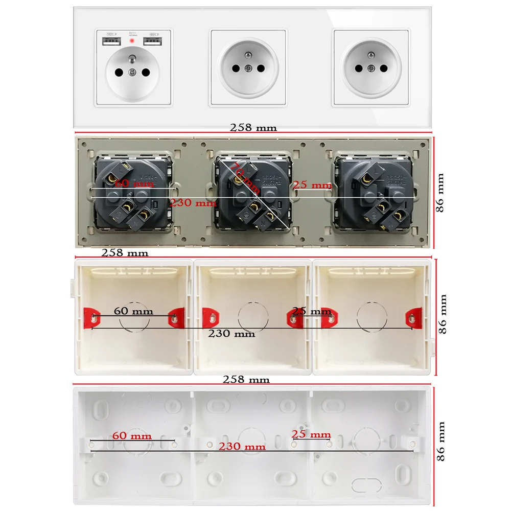 Хрустальный черный французский USB разъем питания 2.1A быстрое зарядное устройство многорамное крепление коробка, Français розетка ЕС Польша 110-250 В 16A розетка