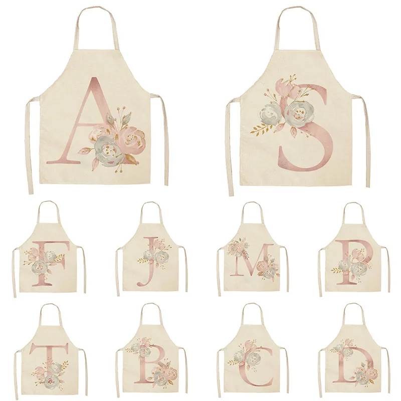Фартуки женские из хлопка и льна, 1 шт., с розовыми буквами и цвета...