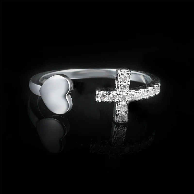Кольцо для Стразы женское, регулируемое, с цирконом, в форме сердца, простой серебристый цвет