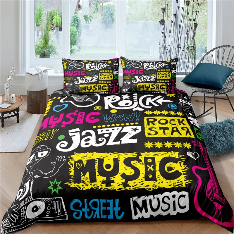 Комплект постельного белья, 23 шт., с принтом музыкальных нот, клав...