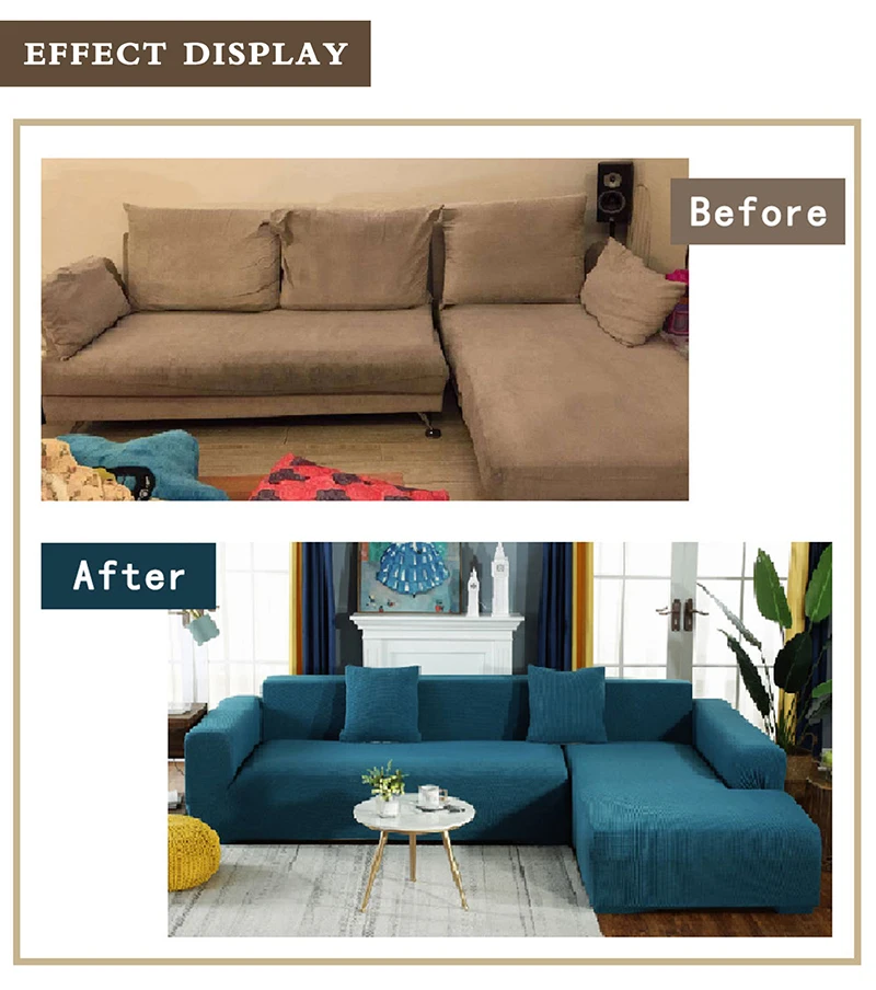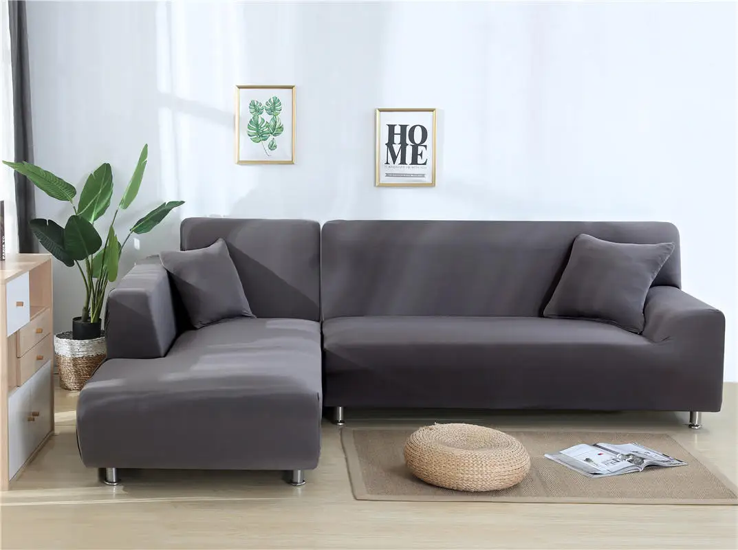 Чехол для дивана, жаккардовый, однотонный, эластичный, L-образный