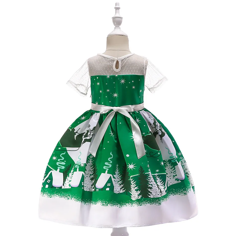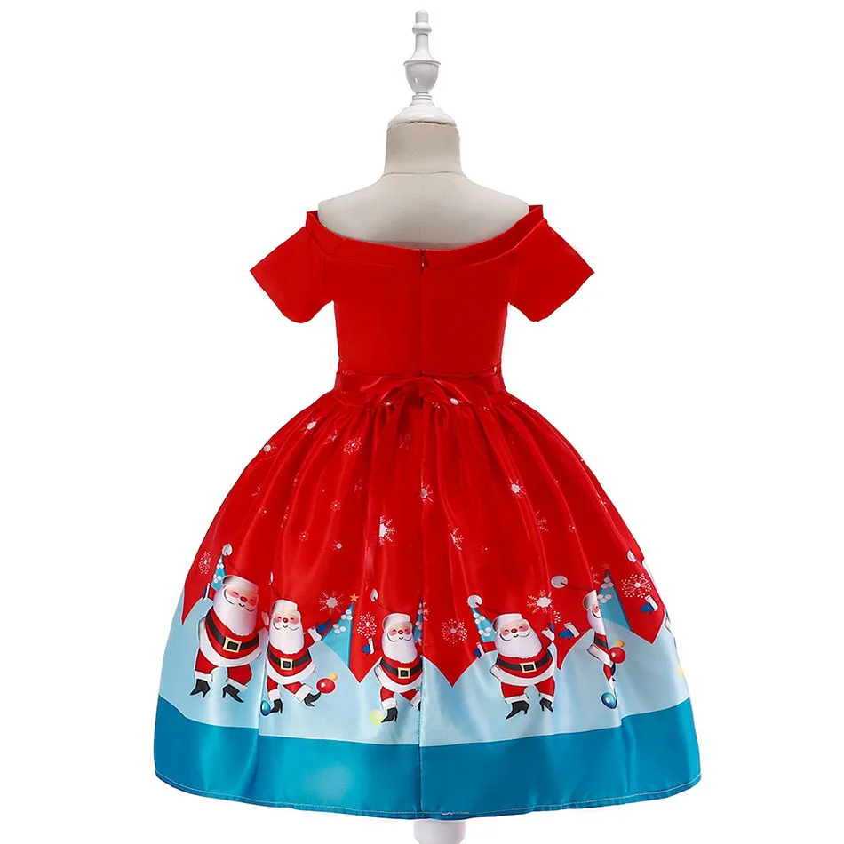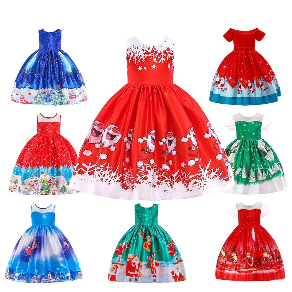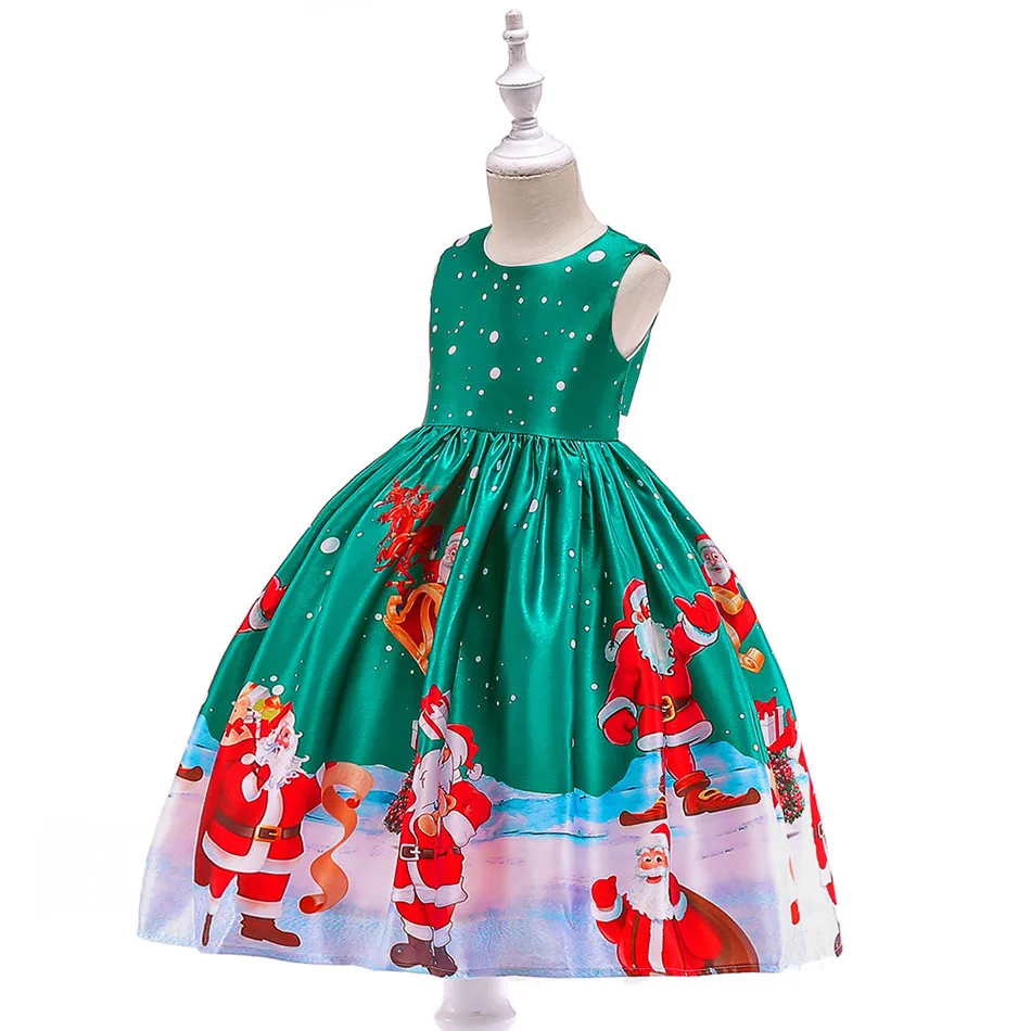 Рождественское платье для девочек, платья принцессы с принтом, детс...