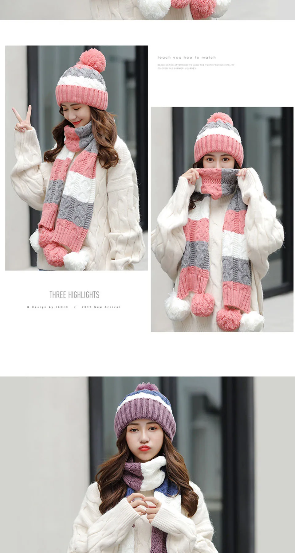 Новинка, женские теплые зимние вязаные шапки, шапка, шарф, перчатки, костюм из трех предметов, вязаная шапка, облегающая шапка, шапки для активного отдыха